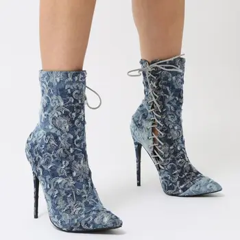 Women Custom Faux Leather Lace Up ladies floral ankle boots