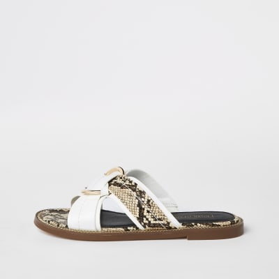 White Cross Over Strap Mule Flat white cross flat sandals