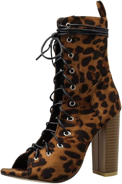 Missli Women Lace-Up Square High Heel cut out peep toe shoes