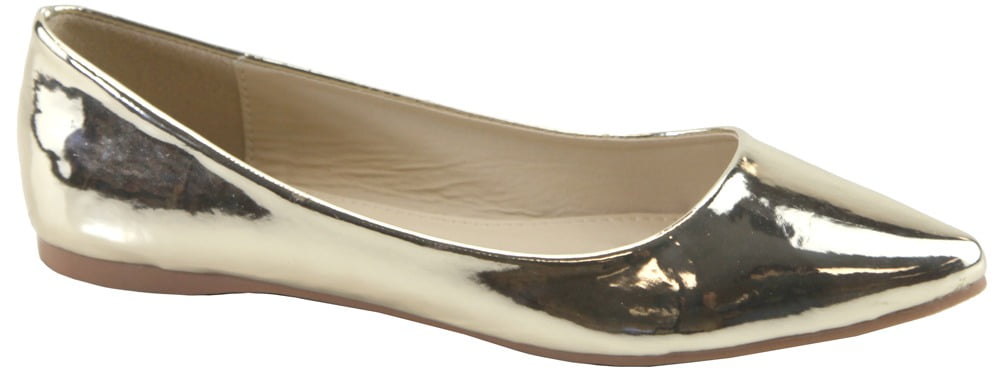 Pointy Toe Ballet Flat Shoes gold slip on flats