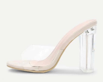 Clear chunky heels | Etsy clear low chunky heels