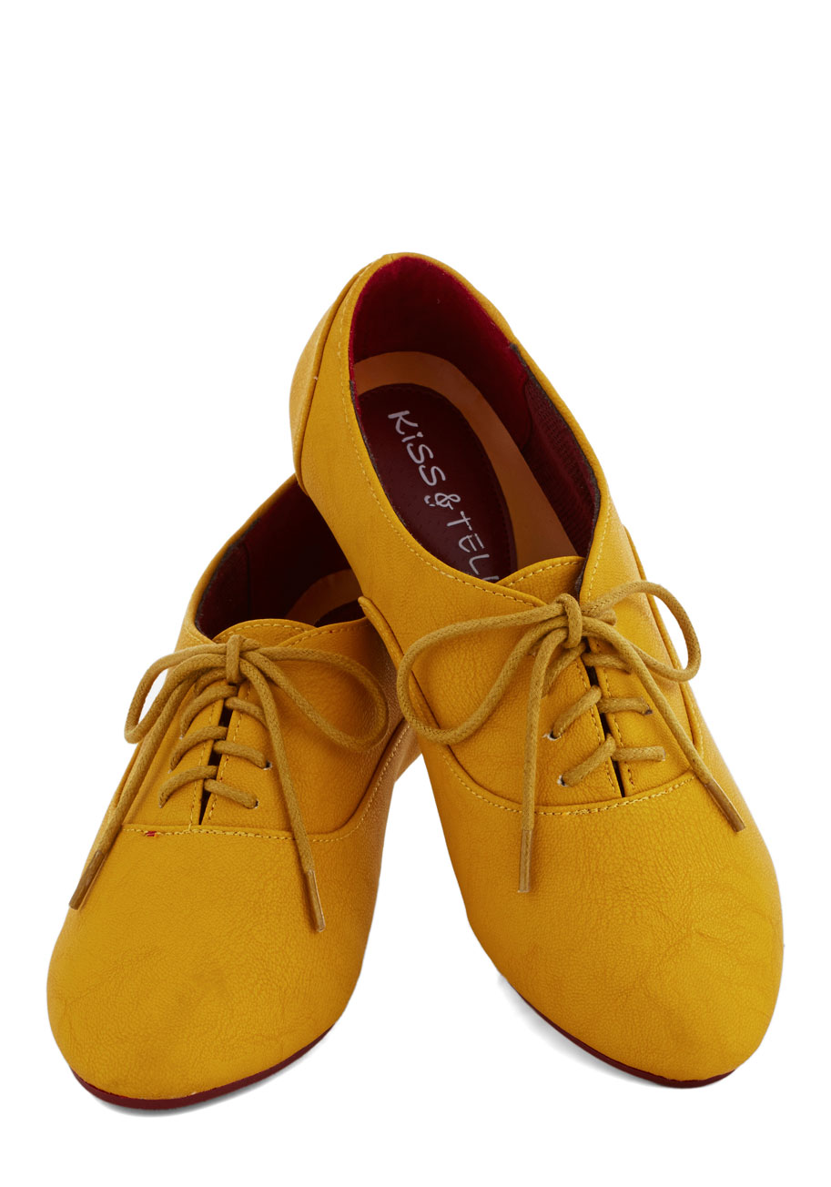 ModCloth Cartoon Afternoon Flat in mustard colored flat shoes
