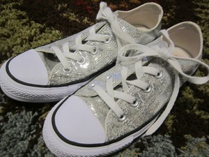 Mens 4 Women 6 Converse All Star Silver sparkly tennis shoes womens