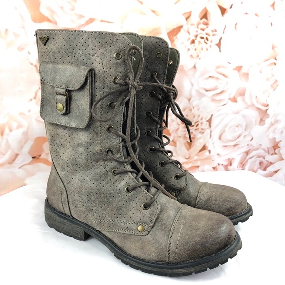 Gray Vegan Leather Combat Boots Size roxy combat boots with pocket