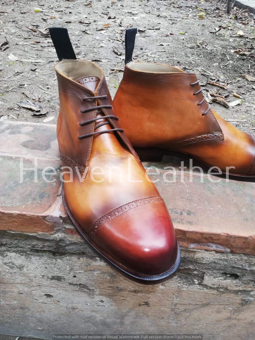 Handmade Mens Two Tone Chukka Boots,Men